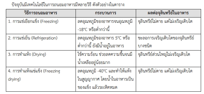 5. จากตารางข้างต้น วิธีการใดที่ช้ถนอมอาหาร และทำให้คุณภาพของอาหารคงไว้ได้น้อยที่สุด
