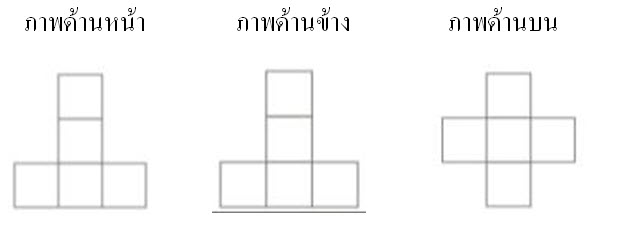 | 16. พิจารณาภาพต่อไปนี้ เกิดจากการนำลูกบาศก์ขนาด 1 หน่วย มาประกอบกันเป็นรูปเรขาคณิต 3 มิติตามข้อใด
