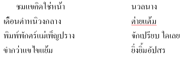 | 4. คำประพันธ์ในข้อใด มีการกล่าวเปรียบเทียบเกินจริง |