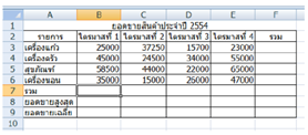 | 2. การคำนวณยอดการขายรวมของไตรมาสที่ 1 ข้อใดถูกต้อง