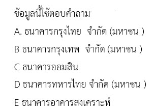| 1. ธนาคารตามข้างล่างนี้ ข้อใดเป็นธนาคารของรัฐบาล