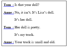 1) Yes, it is. 2) No, it isn?t. 3) It?s my truck. 4) It?s Lisa?s doll.